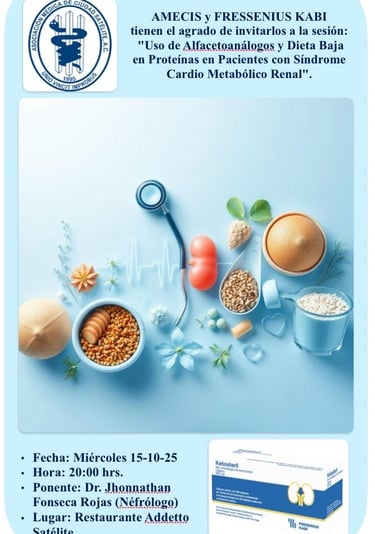 Gracias a Fresenius Kabi y al Dr. Jhonnathan Fonseca Rojas por la plática "Uso de Alfacetoanálogos y Dieta Baja en Proteínas en Pacientes con Síndrome Cardio Reno Metabólico"